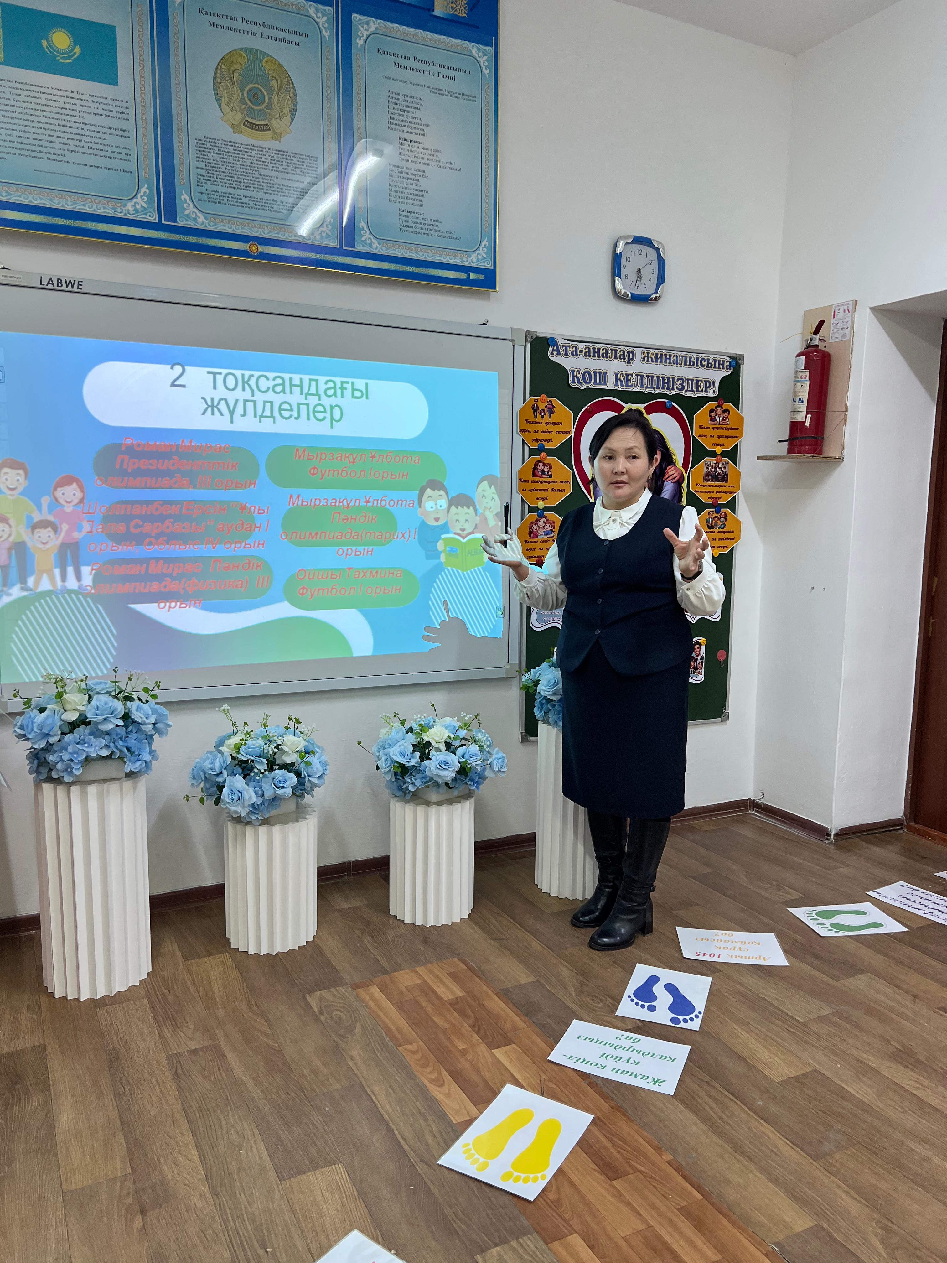 - Бірінші жарты жылдықтағы оқушылардың *білім сапасы*, *үлгерімі*, *тәртібі* туралы ақпаратпен бөлісу;