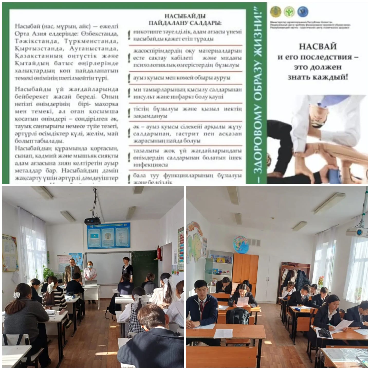 Шу ауданының білім бөліміне қарасты Еңбекші орта мектебінде 2025 жылдың 26 қараша күні "Адал азамат" біртұтас тәрбие бағдарламасын іске асыру аясында Білім алушыларға насыбай және оның салдары, есірткі заттардың, ішімдік ішу мен электрондық темекілер мен вейптерді тұтынудың, нашақорлықтың жас ағзаға тигізер зиянды әсері, өкінішке ұрындырар, келешек өмірлеріне келтірер кесапаты туралы түсінік беру. Зиянды әдеттерден аулақ болып, өзін де өзгені де зиянды әдеттердің қасіретінен қорғай білуге, салауатты өмір сүруге тәрбиелеу мақсатында Мектеп медбикесі Д.Серкебаеваның қатысуымен білім алушылар арасында оқушылармен әңгімелесе отырып бойында салауатты өмір салтын берік қалыптастыру, жеке тұлғаның санасын дамыту, өмірге деген көзқарастарын қалыптастыру, "Адам азса, заман тозады" оны жаңартуда, құрдымға құлдырату да өзімізге байланысты, өз өмірлеріне қауіп тудыратыны бойынша ескерту айтылып, түсіндіру жұмыстары жүргізілді.