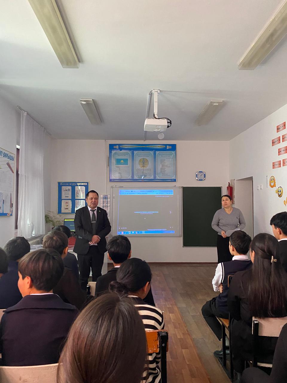 Шу ауданының білім бөліміне қарасты Еңбекші орта мектебінде 2026 жылдың 22 қаңтар күні "Адал азамат" біртұтас тәрбие бағдарламасын іске асыру бойынша "Заң және тәртіп" айлығының аясында Білім алушыларға құндылықтарды насихаттау мен ұстану, заңға бағынушылықты арттыру және оқушылардың құқықтық мәдениетін дамыту мақсатында